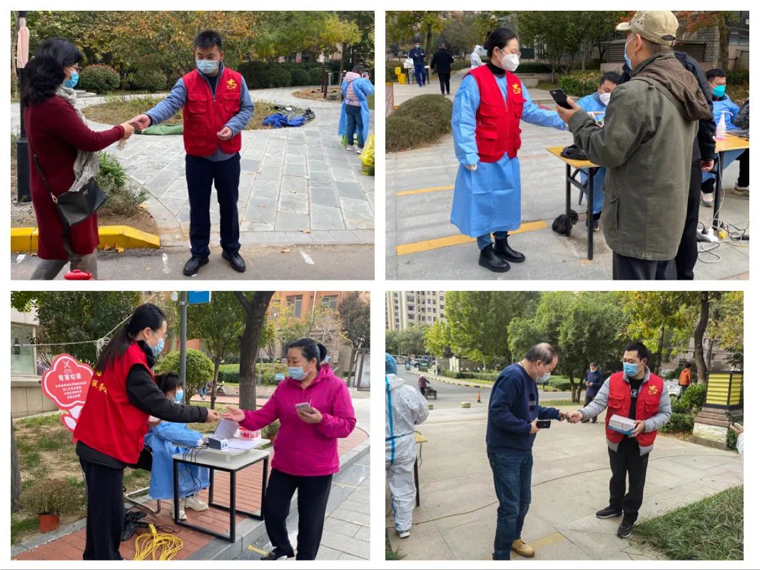 志愿服務(wù)暖人心。志愿者們準(zhǔn)時(shí)到達(dá)社區(qū)核酸采集點(diǎn),在各個(gè)檢測(cè)點(diǎn)幫助維持秩序,引導(dǎo)群眾保持安全距離,有序檢測(cè),幫助老年群眾注冊(cè)核酸檢測(cè)信息碼,發(fā)放核酸檢測(cè)貼紙,宣傳疫情防控法律法規(guī),針對(duì)群眾提出的各項(xiàng)疑問進(jìn)行耐心解答。志愿者們?cè)诓煌膷徫簧下穆毐M責(zé),配合社區(qū)工作人員、醫(yī)務(wù)工作者明確分工、協(xié)調(diào)配合,大大提高了檢測(cè)效率,確保了社區(qū)按時(shí)完成全員核酸檢測(cè)工作。